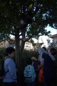 木の下で実を受け取ったり、木を見上げて観察したりと、楽しみながら参加していました!