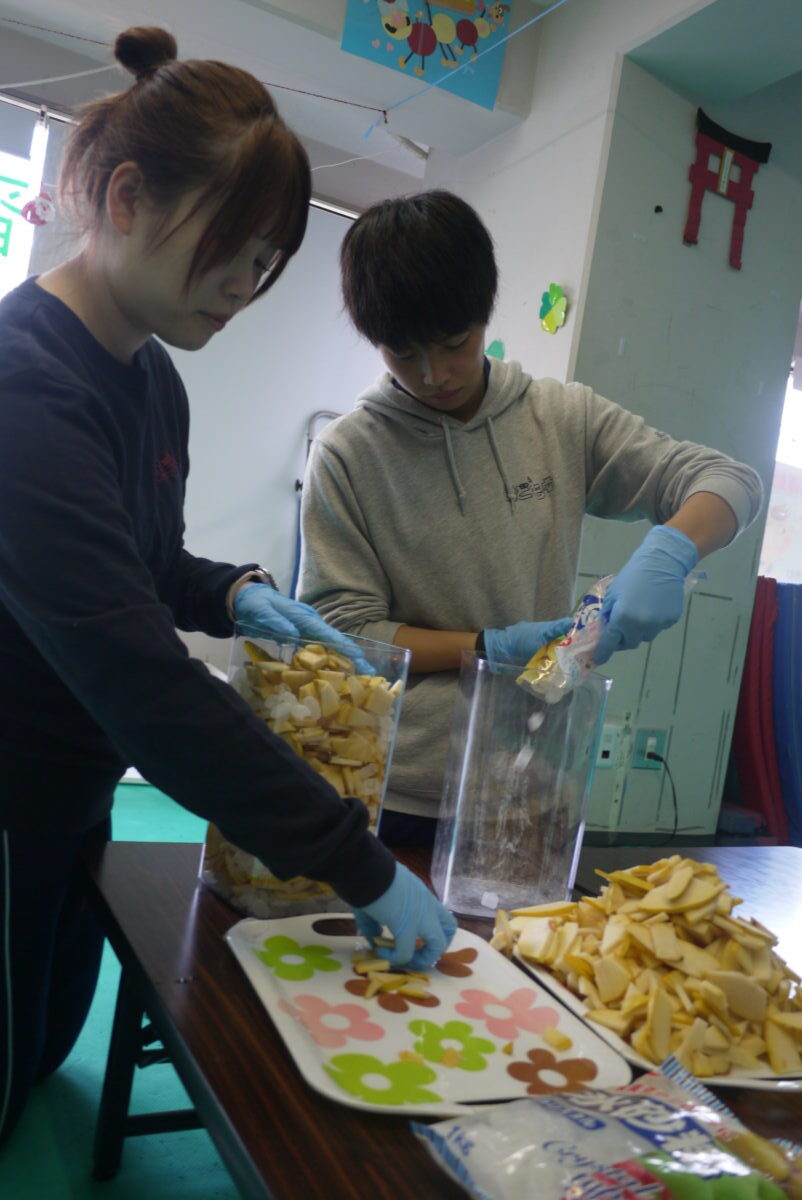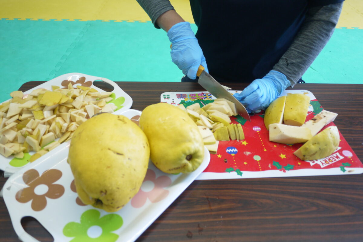 教室に戻ってからは、スタッフが一生懸命カリンをカットして、